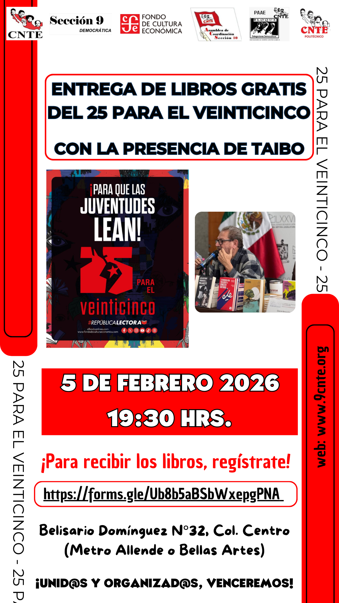 ENTREGA DE LIBROS GRATIS DEL 25 PARA EL VEINTICINCO CON LA PRESENCIA DE TAIBO