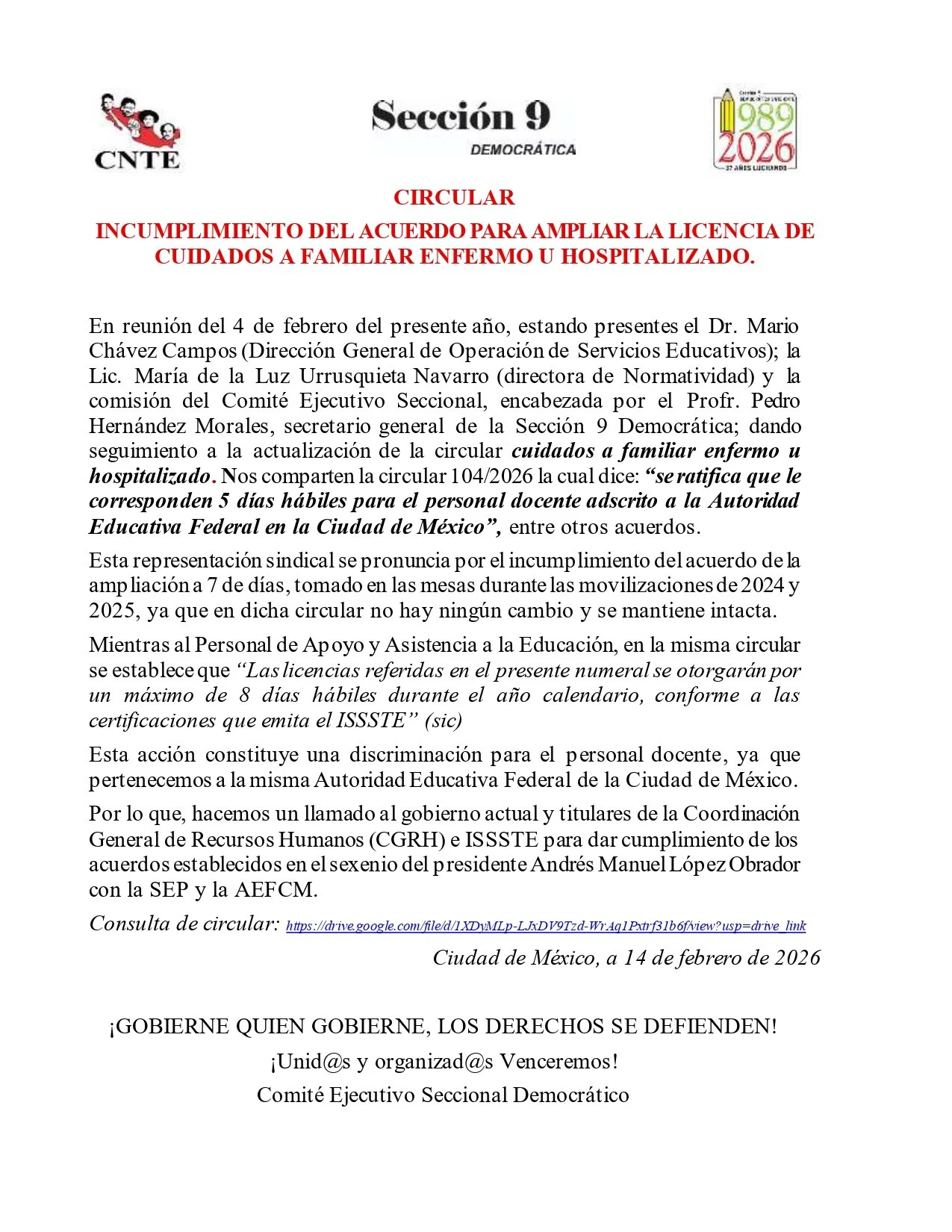 INCUMPLIMIENTO DEL ACUEDO PARA AMPLIAR LICENCIA DE CUIDADOS A FAMILIAR ENFERMO U HOSPITALIZADO.