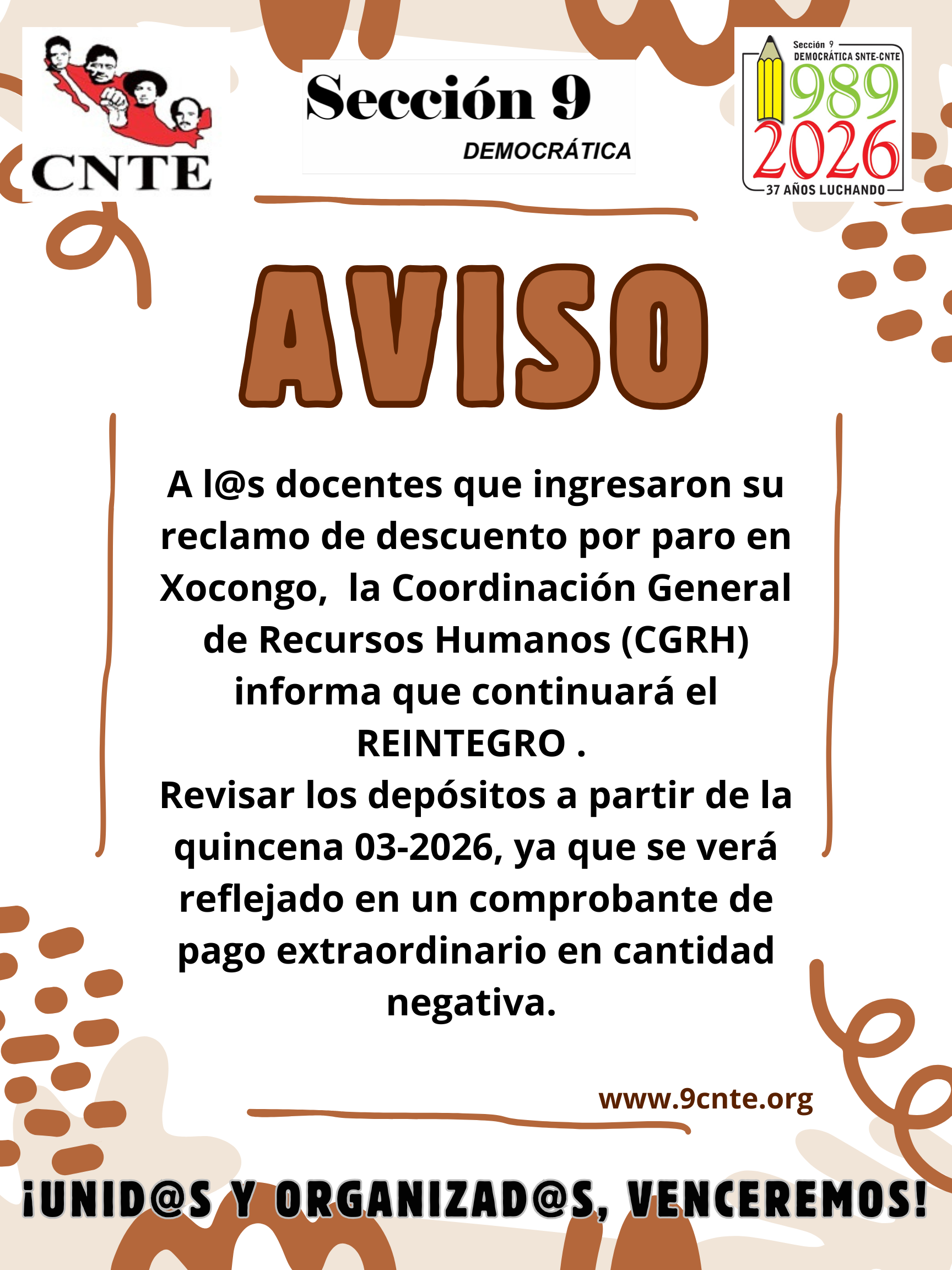 REINTEGRO DE DESCUENTO POR PARO A PARTIR DE LA QUINCENA 03-2026